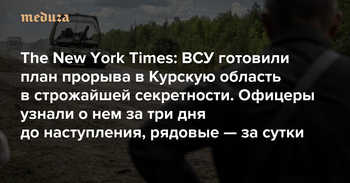 The New York Times: ВСУ готовили план прорыва в Курскую область в строжайшей секретности Офицеры узнали о нем за три дня до наступления, рядовые — за сутки