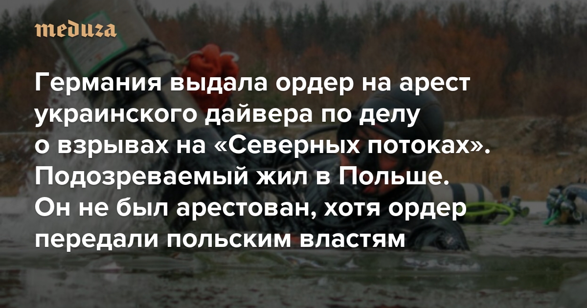 Германия выдала ордер на арест украинского дайвера по делу о взрывах на «Северных потоках» Подозреваемый жил в Польше. Он не был арестован, хотя ордер передали польским властям