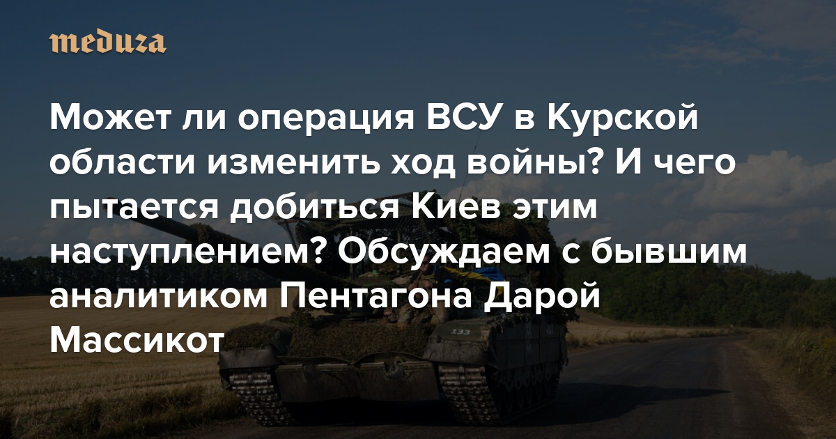 Может ли операция ВСУ в Курской области изменить ход войны? И чего пытается добиться Киев этим наступлением? Обсуждаем с бывшим аналитиком Пентагона Дарой Массикот