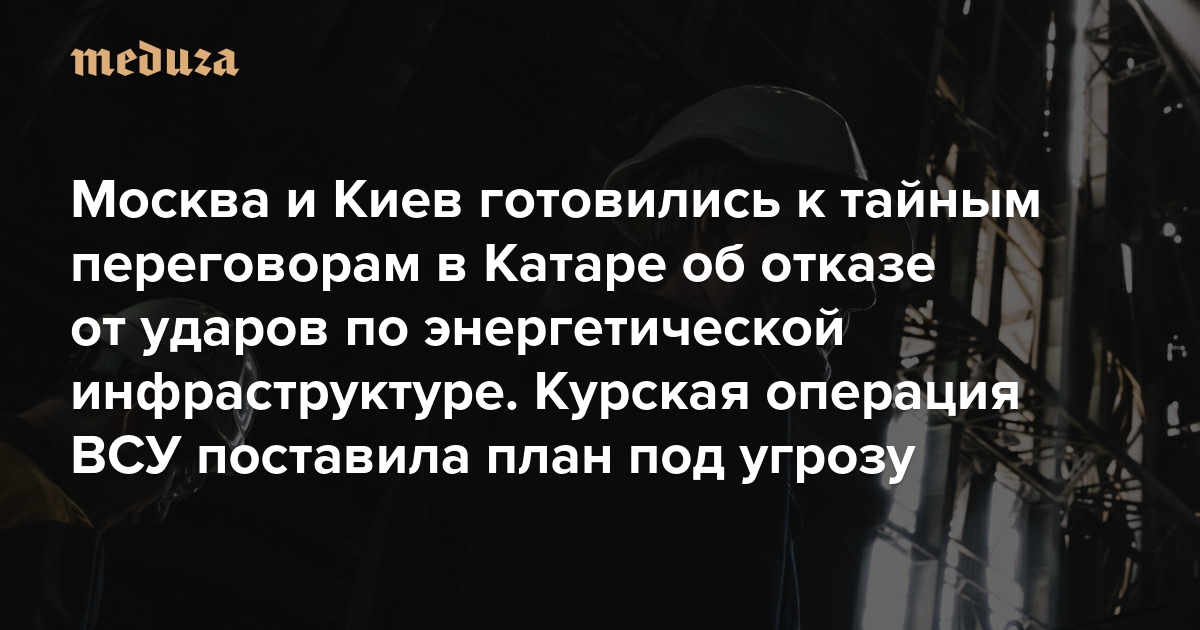 Москва и Киев готовились к тайным переговорам в Катаре об отказе от ударов по энергетической инфраструктуре. Курская операция ВСУ поставила план под угрозу Главное из материала The Washington Post