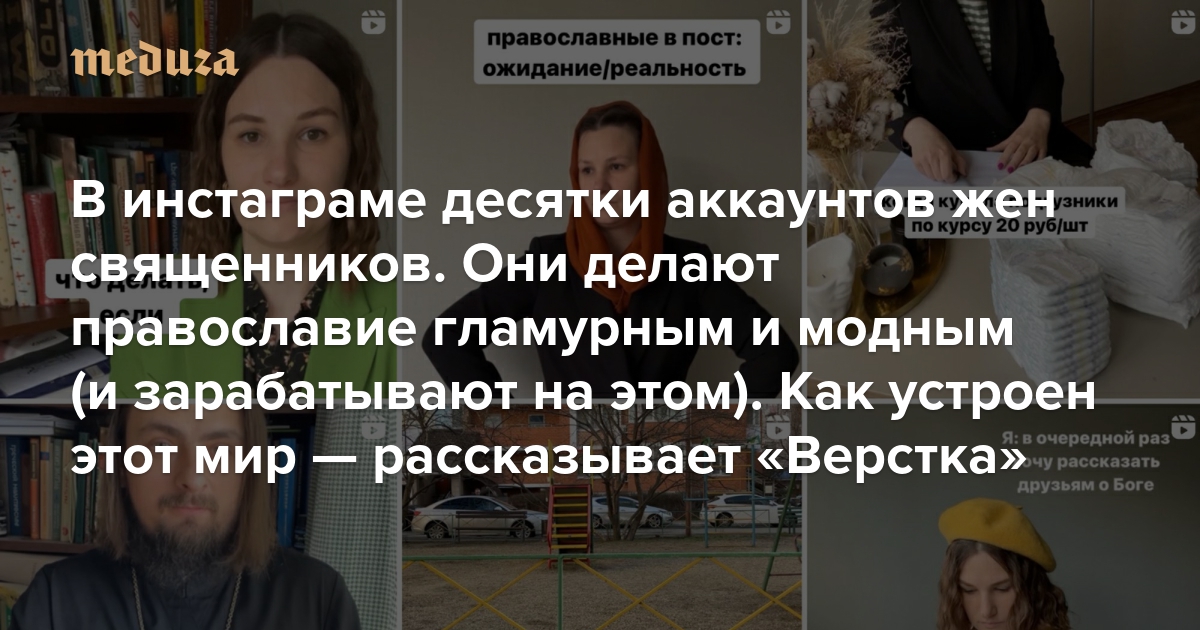 «Девочки, хорошего верного мужа можно найти только в Церкви» В инстаграме десятки аккаунтов жен священников. Они делают православие гламурным и модным (и зарабатывают на этом). Как устроен этот мир — рассказывает «Верстка»