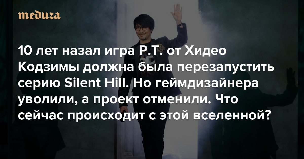 10 лет назад геймдизайнер Хидео Кодзима устроил свою последнюю крупную мистификацию. Под видом «интерактивного тизера» P.T. от несуществующей студии разработчик выпустил демоверсию новой части Silent Hill. К тому моменту издательство Konami уже около десяти лет не могло определиться с курсом развития серии — и предложило переосмыслить ее своему самому известному сотруднику. Увы, до релиза игра так и не добралась — Кодзима рассорился с руководством и покинул компанию, а его проект отменили. «Медуза» вспоминает историю P.T. и рассказывает, почему эту маленькую игру можно считать вершиной творчества Кодзимы.