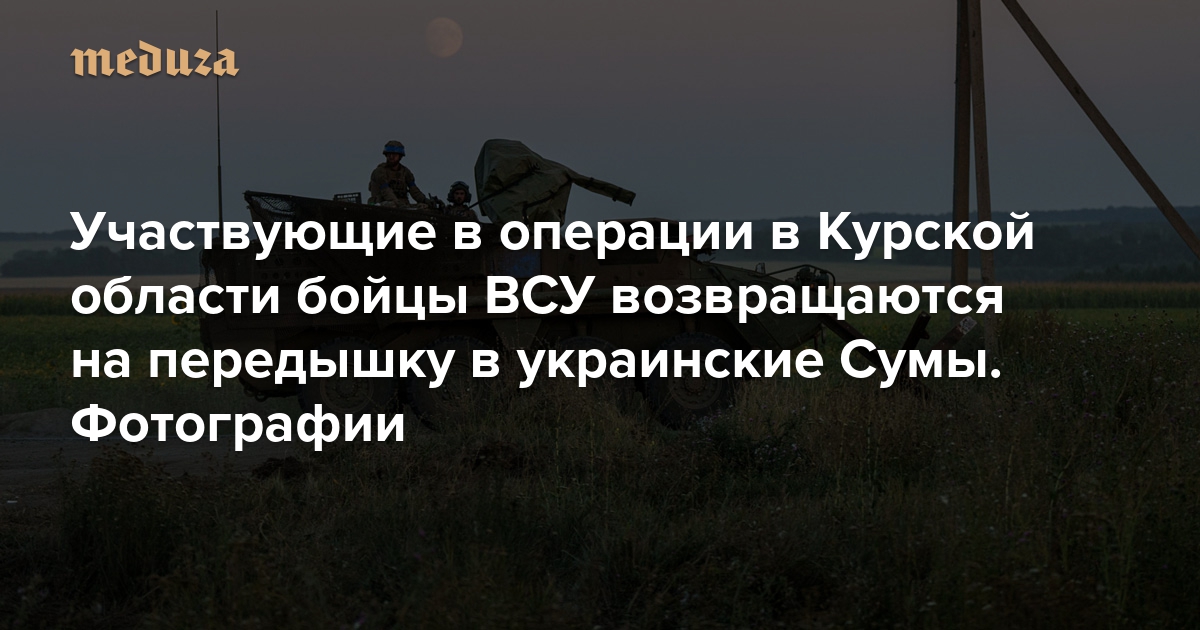 Продвижение ВСУ в Курской области к концу второй недели наступления замедлилось. Российское командование перебросило в зону прорыва резервы, которые смогли перекрыть направления для наступления вдоль основных дорог. В ответ украинские войска пытаются атаковать эти заслоны с флангов, украинское командование продолжает подтягивать резервы через границу. Как писала в свежей сводке «Медуза», на Курский фронт прибыли даже подразделения из состава бригад, до последнего момента активно действовавших на фронте, а не готовившихся к наступлению в тылу. Украинские фотографы смогли снять украинских военных в приграничье — после возвращения с заданий в Курской области. «Медуза» показывает эти фотографии.