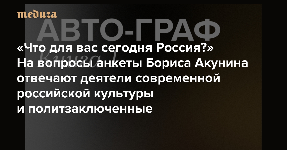 «Что для вас сегодня Россия?» На вопросы анкеты Бориса Акунина отвечают деятели современной российской культуры и политзаключенные