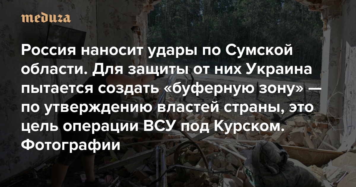 Одной из основных целей операции ВСУ в Курской области, по словам властей Украины, является создание «буферной зоны», которая позволит сократить обстрелы с российской стороны. С начала лета, по данным украинской стороны, Россия нанесла по территории Сумской области более двух тысяч ударов, применяя артиллерию, дроны, минометы и авиабомбы. После начала украинского наступления интенсивность российских ударов, заявлял глава Сумской области Владимир Артюх, усилилась. Из приграничных районов Сумской области эвакуируют жителей, въезд в них ограничен. «Медуза» публикует фотографии, сделанные в приграничных районах Сумской области, которые обстреливают российские войска.