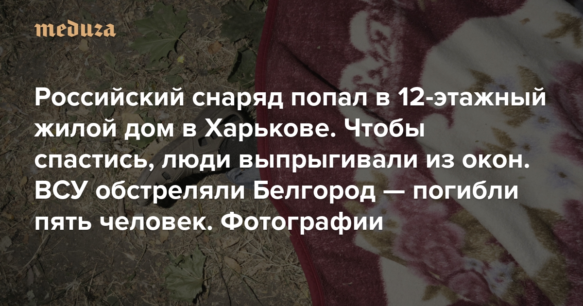 Российский снаряд попал в 12-этажный жилой дом в Харькове. Чтобы спастись, люди выпрыгивали из окон. ВСУ обстреляли Белгород — погибли пять человек Фотографии