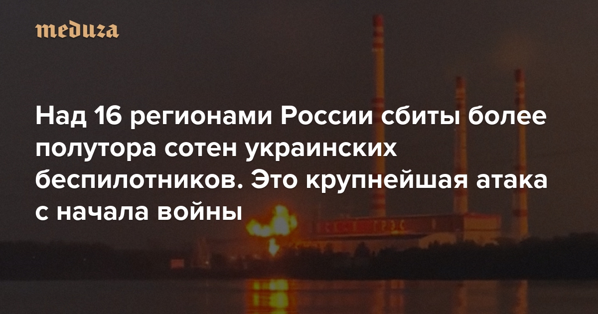 Над 16 регионами России сбиты более полутора сотен украинских беспилотников. Это крупнейшая атака с начала войны В Москве из-за падения обломков дрона произошел пожар на НПЗ