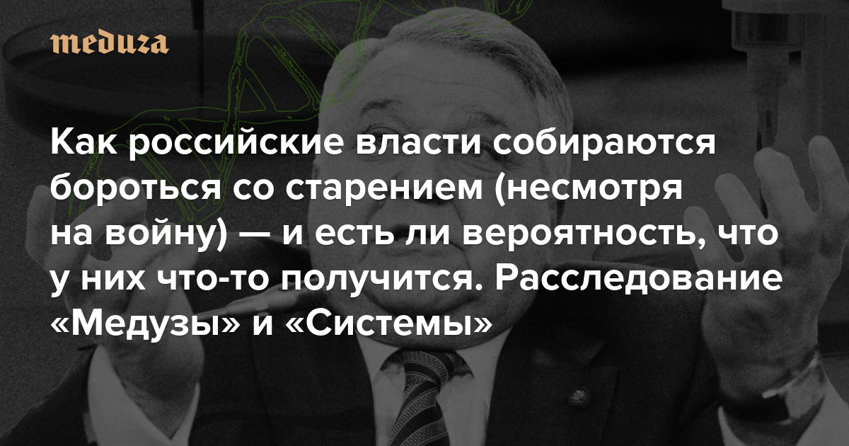 «Причуды стареющего политбюро» Как российские власти собираются бороться со старением (несмотря на войну) — и есть ли вероятность, что у них что-то получится. Расследование «Медузы» и «Системы»