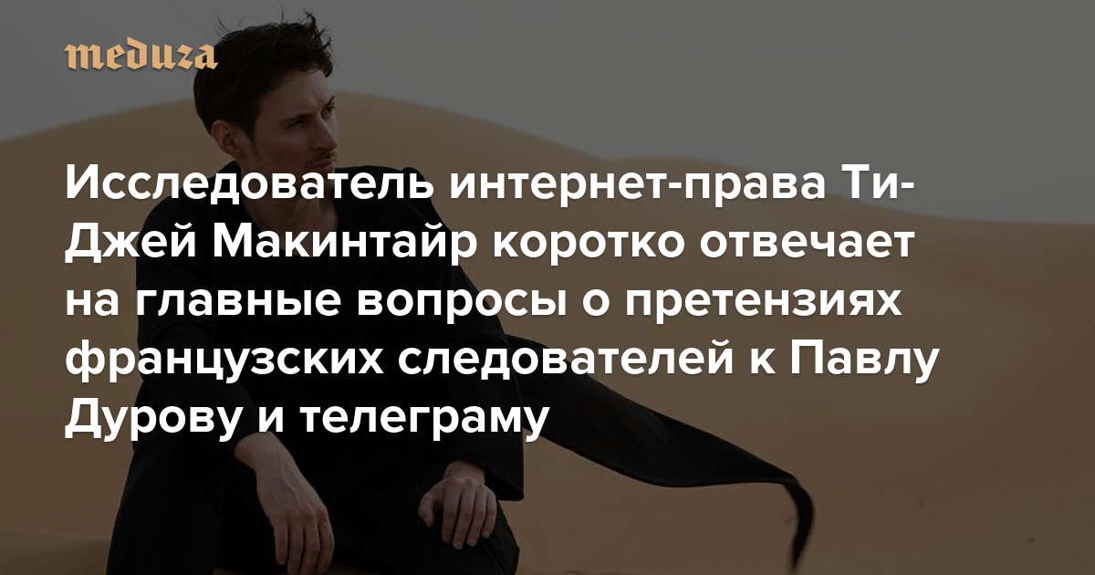 «Раньше мы не видели ничего подобного в европейском контексте» Исследователь интернет-права Ти-Джей Макинтайр коротко отвечает на главные вопросы о претензиях французских следователей к Павлу Дурову и телеграму