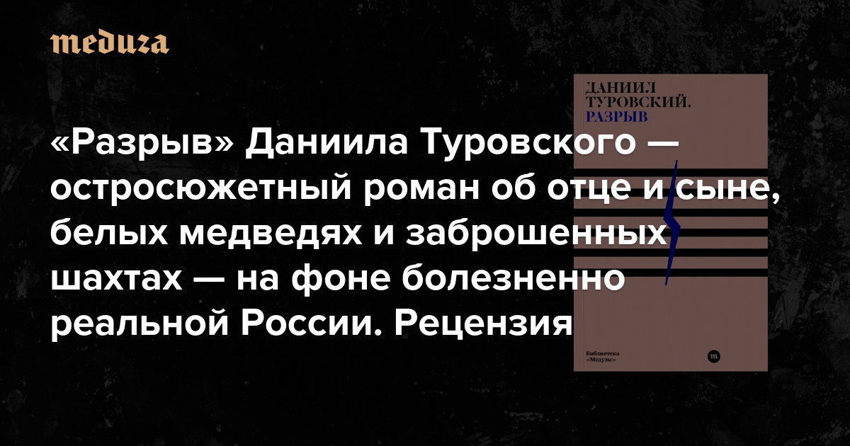 «Разрыв» Даниила Туровского — остросюжетный роман об отце и сыне, белых медведях и заброшенных шахтах — на фоне болезненно реальной России Это первая книга в линейке художественной литературы издательства «Медузы»
