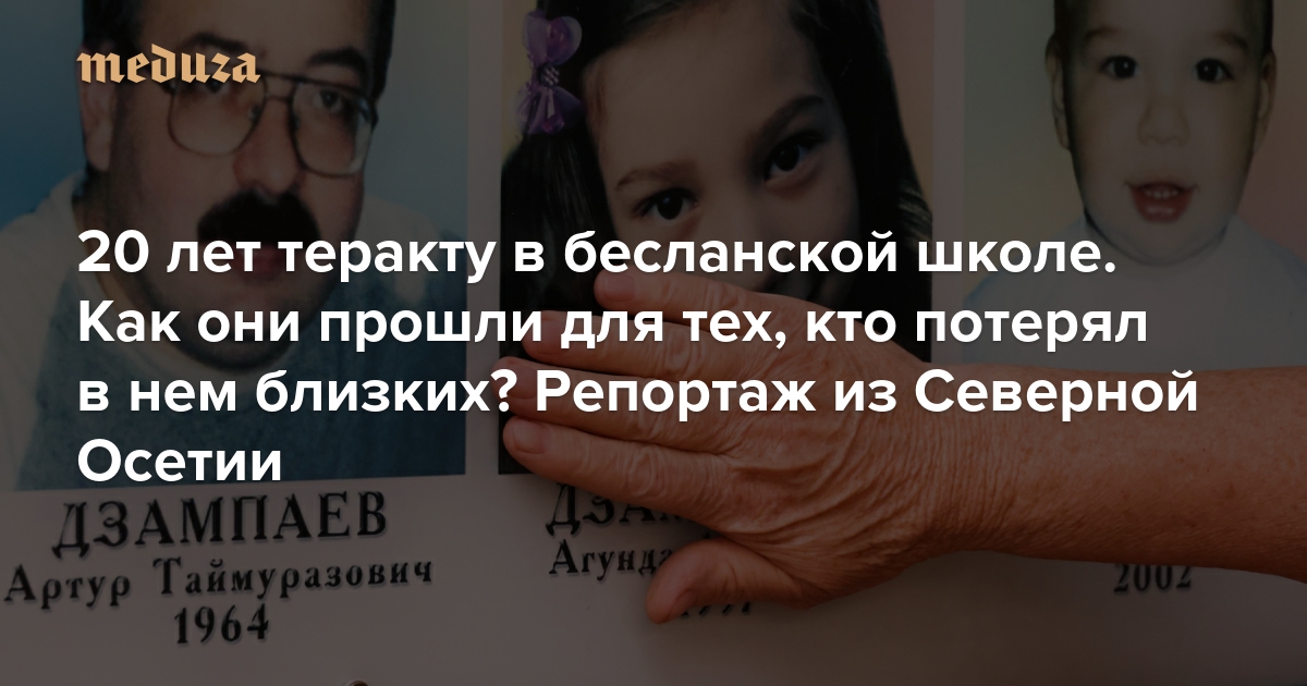 5 и 6 сентября 2004 года в Беслане хоронили жертв теракта в первой городской школе. В нем погибли 333 человека, в том числе 186 детей. Не менее 783 человек были ранены. Хотя формально расследование завершено, родственники погибших продолжают настаивать, что при осаде и штурме школы силовики допустили ошибки, которые привели к гибели десятков людей. На 20-ю годовщину теракта власти Беслана, как обычно, организовали события в память о погибших. А их близкие и пережившие захват выпускники школы, как обычно, отнеслись к этому скептически. Журналисты независимого кооператива «Берег» съездили в Беслан и рассказывают, как спустя 20 лет в нем до сих пор живут, почти не пересекаясь, личные воспоминания участников тех событий — и официальная история, рассказанная властями. «Медуза» публикует этот репортаж целиком.