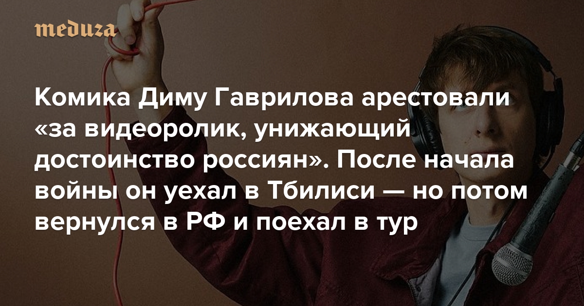 Комика Диму Гаврилова арестовали «за видеоролик, унижающий достоинство россиян» После начала войны он уехал в Тбилиси — но потом вернулся в РФ и поехал в тур