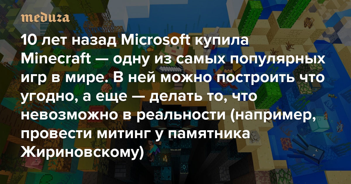 10 лет назад Microsoft купила Minecraft — одну из самых популярных игр в мире В ней можно построить что угодно, а еще — делать то, что невозможно в реальности (например, провести митинг у памятника Жириновскому)