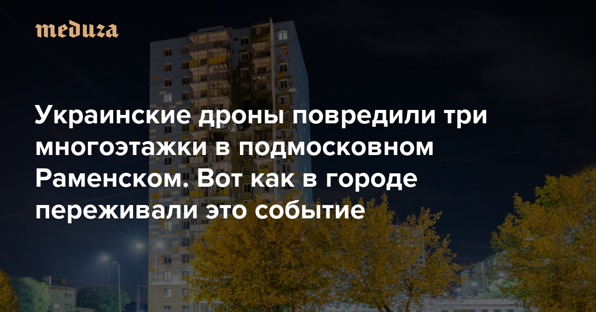 В ночь на 10 сентября несколько подмосковных городов атаковали украинские дроны. Сильнее других пострадало Раменское на юго-востоке Подмосковья: там взрывами повредило три многоэтажных дома, в одном из них погибла женщина, еще три человека были ранены. Возможно, целью беспилотников был аэропорт Жуковский, расположенный всего в пяти километрах от города. Атака произошла на фоне новостей о том, что скоро Украина, возможно, получит разрешение наносить удары западными ракетами по территории России, и объекты в Москве и рядом с ней входят в число возможных целей для ВСУ. Кооператив независимых журналистов «Берег» отправился в Раменское, чтобы узнать, как горожане относятся к случившемуся — и боятся ли, что вскоре удары станут более масштабными.