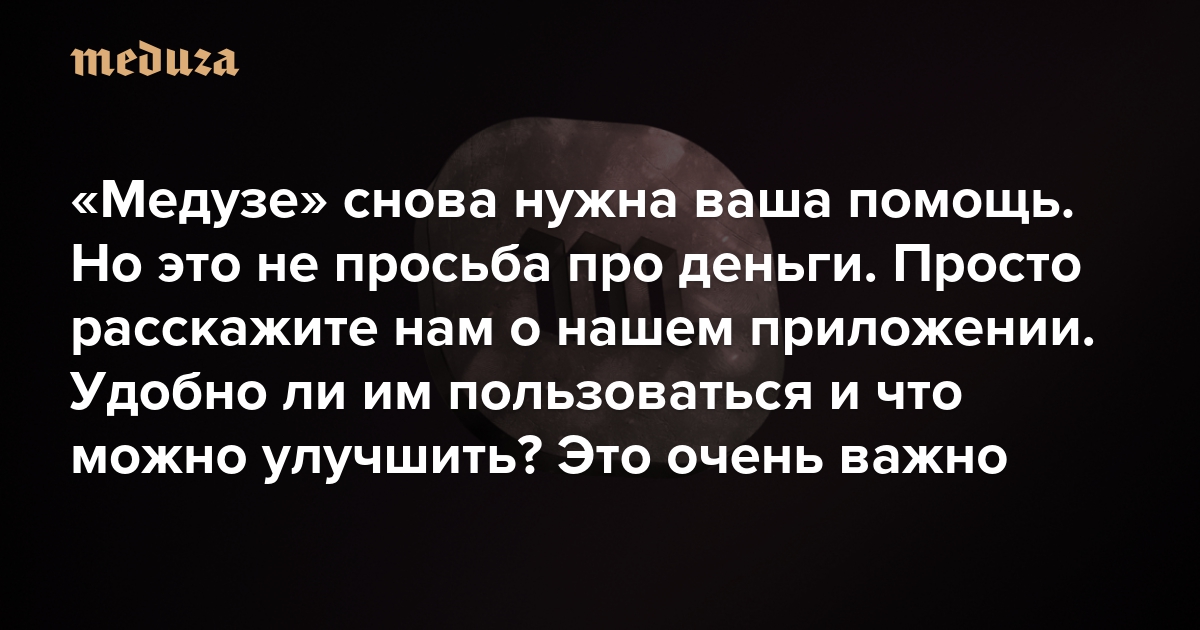 «Медузе» снова нужна ваша помощь. Но это не просьба про деньги Просто расскажите нам о нашем приложении. Удобно ли им пользоваться и что можно улучшить? Это очень важно