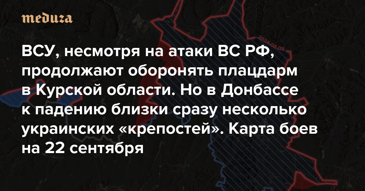 ВСУ, несмотря на атаки ВС РФ, продолжают оборонять плацдарм в Курской области. Но в Донбассе к падению близки сразу несколько украинских «крепостей» Где кризис глубже всего? Карта боев на 22 сентября