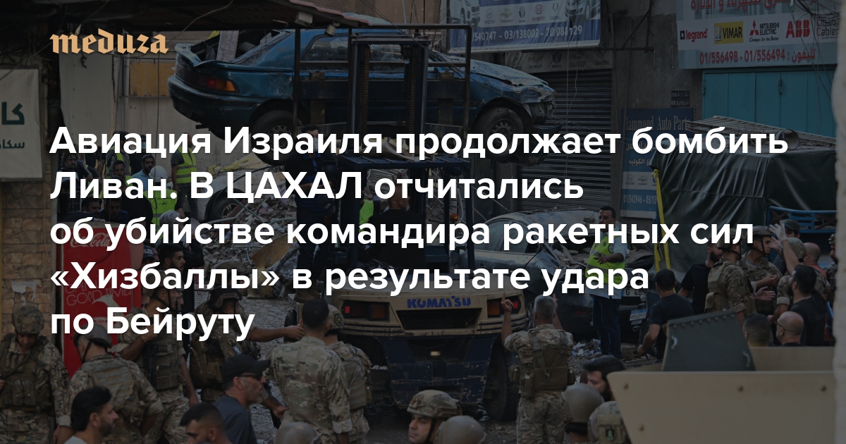 Авиация Израиля продолжает бомбить Ливан. В ЦАХАЛ отчитались об убийстве командира ракетных сил «Хизбаллы» в результате удара по Бейруту