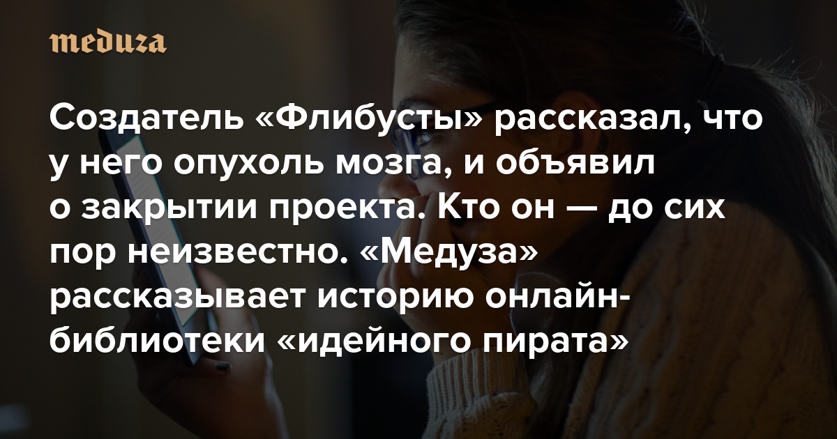 «Всем спасибо, было весело» Создатель «Флибусты» рассказал, что у него опухоль мозга, и объявил о закрытии проекта. Кто он — до сих пор неизвестно. «Медуза» рассказывает историю онлайн-библиотеки «идейного пирата»