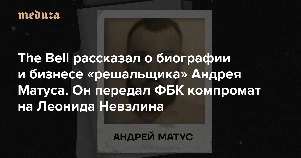 В середине сентября Фонд борьбы с коррупцией выпустил расследование, в котором обвинил бывшего топ-менеджера ЮКОСа Леонида Невзлина в организации нападений на политика Леонида Волкова, директора фонда Ивана Жданова и жену экономиста Максима Миронова Александру Петрачкову. Расследование основано на переписке Невзлина, которую ФБК предоставил Андрей Матус — в фонде его представили «решальщиком» со связями в органах. Невзлин назвал расследование ФБК «состряпанным в Москве сливом» и отверг обвинения. Защитники бизнесмена, в том числе его друг Михаил Ходорковский, предполагают, что слитая переписка может быть провокацией российских спецслужб. Основанием для таких предположений стал в том числе источник переписки — Матус, о котором до сих пор практически ничего не было известно. Издание The Bell изучило биографию и бизнес Андрея Матуса, а также поговорило с ним самим. «Медуза» пересказывает главное из этого материала.