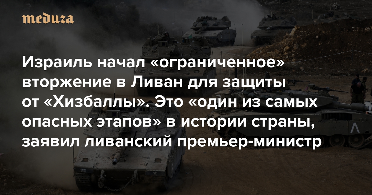 Израиль начал «ограниченное» вторжение в Ливан для защиты от «Хизбаллы». Главное Это «один из самых опасных этапов» в истории страны, заявил ливанский премьер-министр