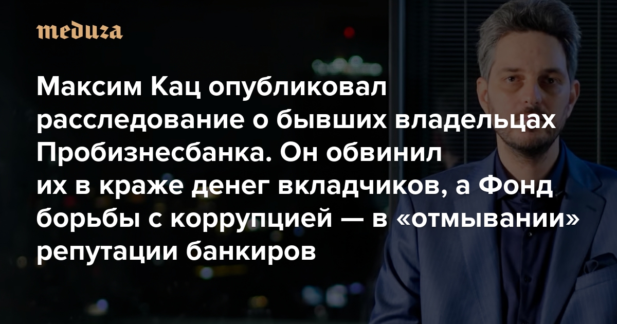 Максим Кац опубликовал расследование о бывших владельцах Пробизнесбанка. Он обвинил их в краже денег вкладчиков, а Фонд борьбы с коррупцией — в «отмывании» репутации банкиров ФБК эти претензии отвергает