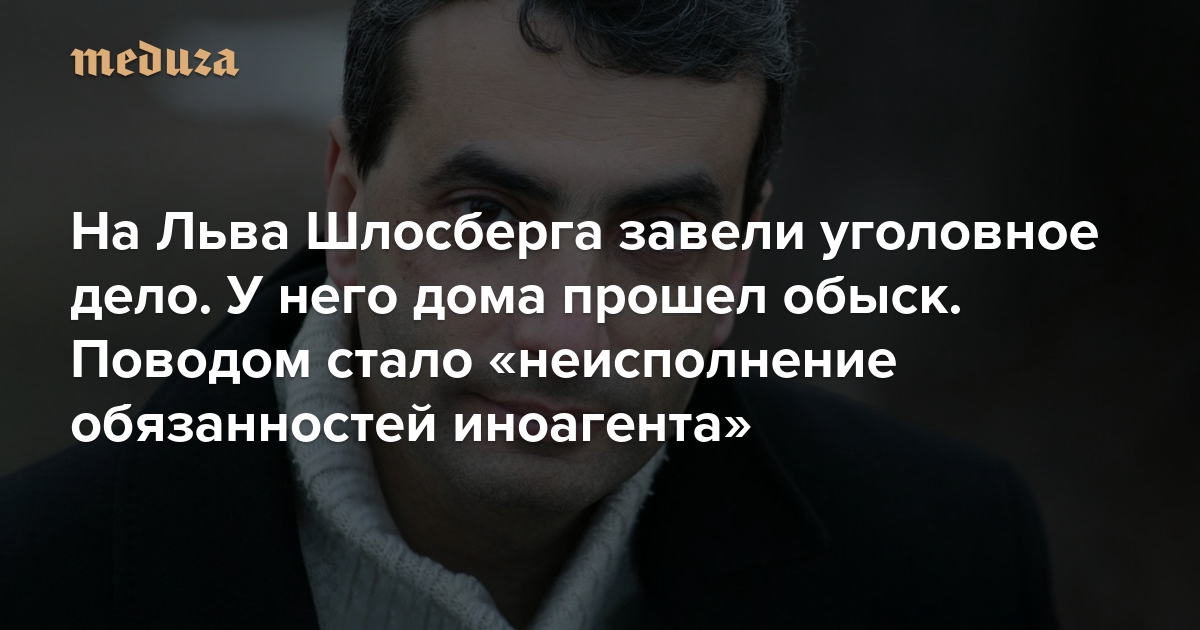 На Льва Шлосберга завели уголовное дело. У него дома прошел обыск. Главное Поводом стало «неисполнение обязанностей иноагента»