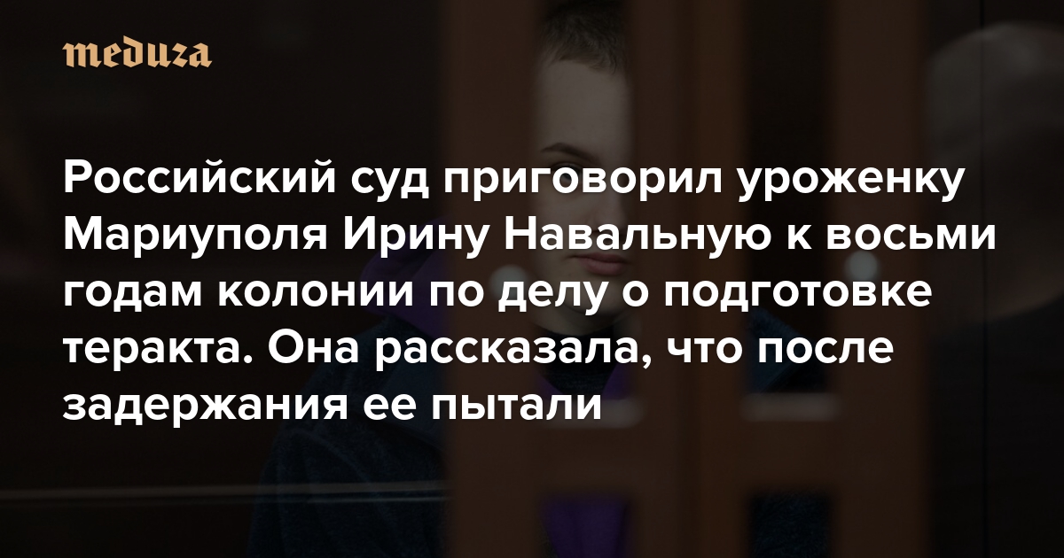 «Думаю, первую роль в том, что ее задержали, сыграла фамилия» Российский суд приговорил уроженку Мариуполя Ирину Навальную к восьми годам колонии по делу о подготовке теракта. Она рассказала, что после задержания ее пытали