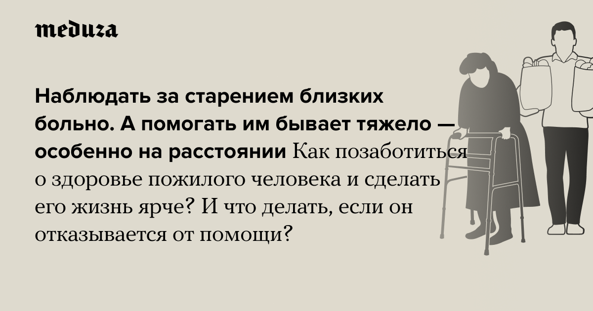 Наблюдать за старением близких больно. А помогать им бывает тяжело — особенно на расстоянии Как позаботиться о здоровье пожилого человека и сделать его жизнь ярче? И что делать, если он отказывается от помощи?