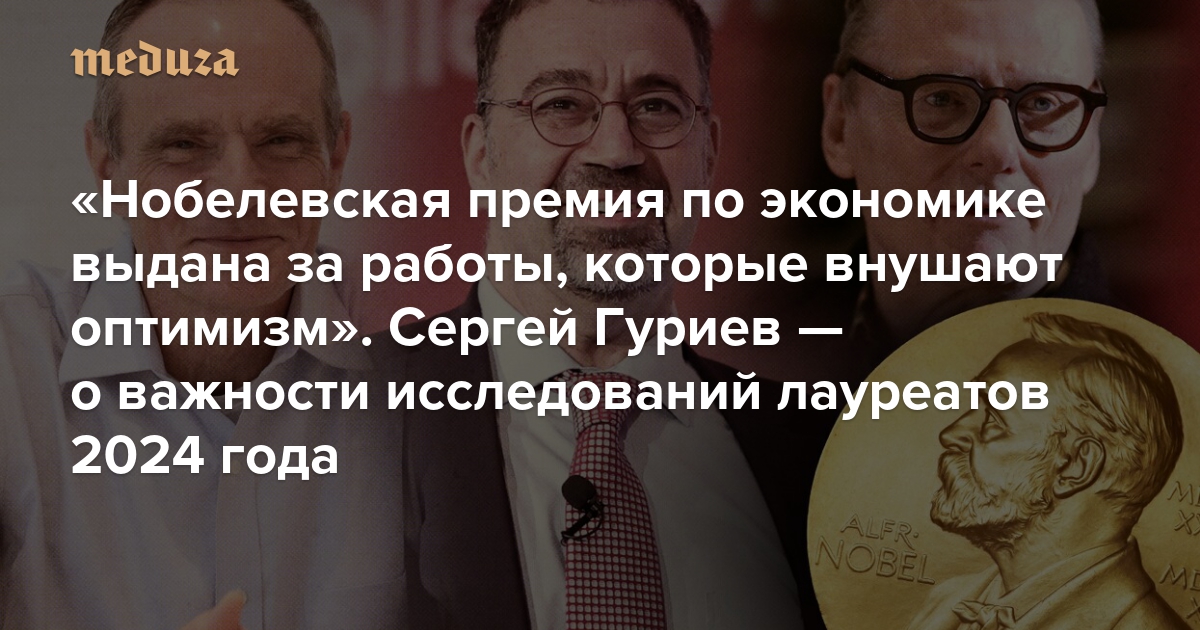 «Нобелевская премия по экономике выдана за работы, которые внушают оптимизм» Чем важны идеи лауреатов 2024 года? В богатых странах все еще лучше работают институты? И есть ли шанс на демократизацию у России? Объясняет Сергей Гуриев
