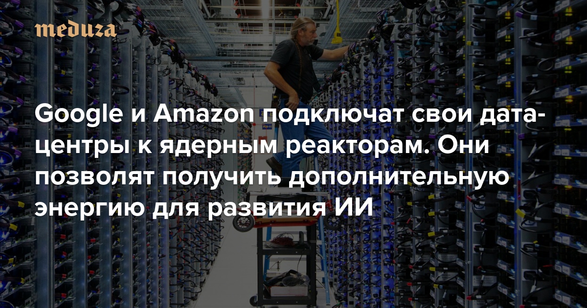 Компания Google заключила соглашение с американским стартапом Kairos Power о закупке энергии, вырабатываемой несколькими малыми модульными ядерными реакторами. Первый из них планируют запустить в 2030 году. Эта сделка позволит Google обеспечить дополнительным электричеством свои офисы, а главное — дата-центры, которые потребляют много энергии. Спустя два дня с аналогичным анонсом выступила компания Amazon. «Медуза» рассказывает, зачем крупные технологические гиганты инвестируют в развитие ядерной энергетики.
