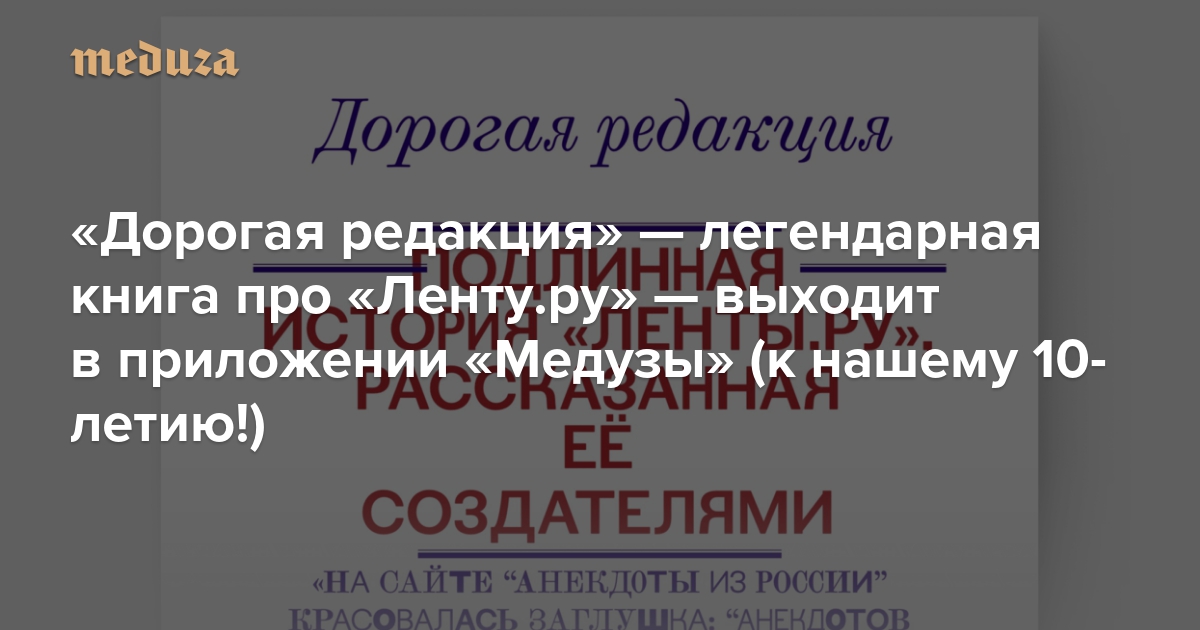 «Дорогая редакция» — легендарная книга про «Ленту.ру» — выходит в приложении «Медузы» (к нашему 10-летию!) Вы можете прочитать ее бесплатно прямо сейчас