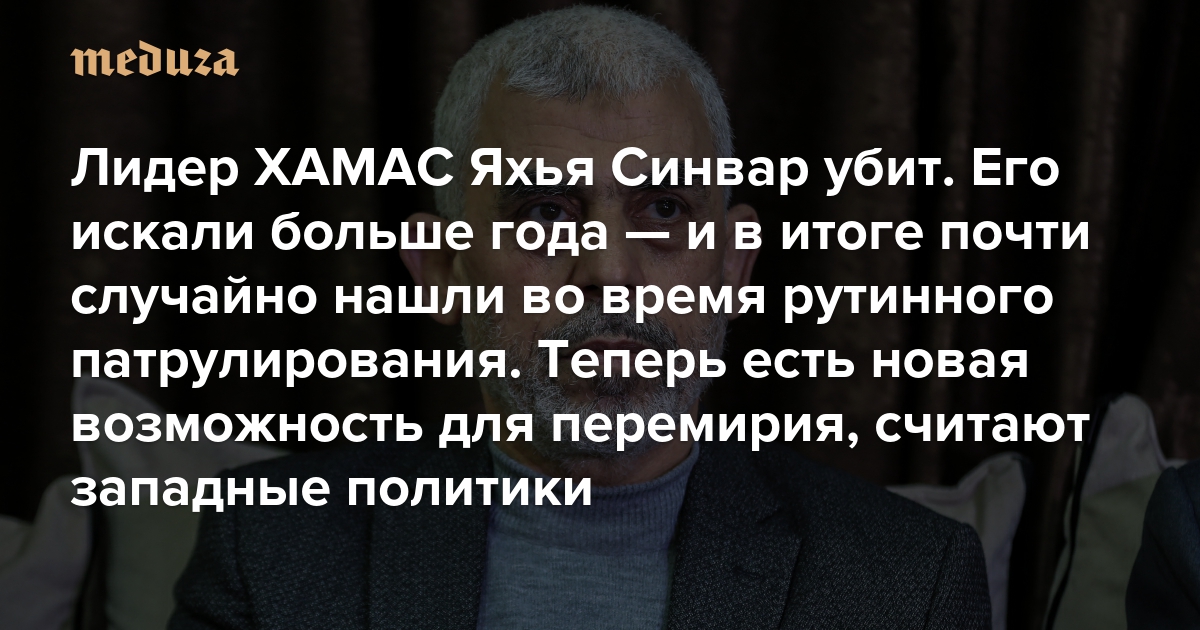 Лидер ХАМАС Яхья Синвар убит. Его искали больше года — и в итоге почти случайно нашли во время рутинного патрулирования Теперь есть новая возможность для перемирия на Ближнем Востоке, считают западные политики