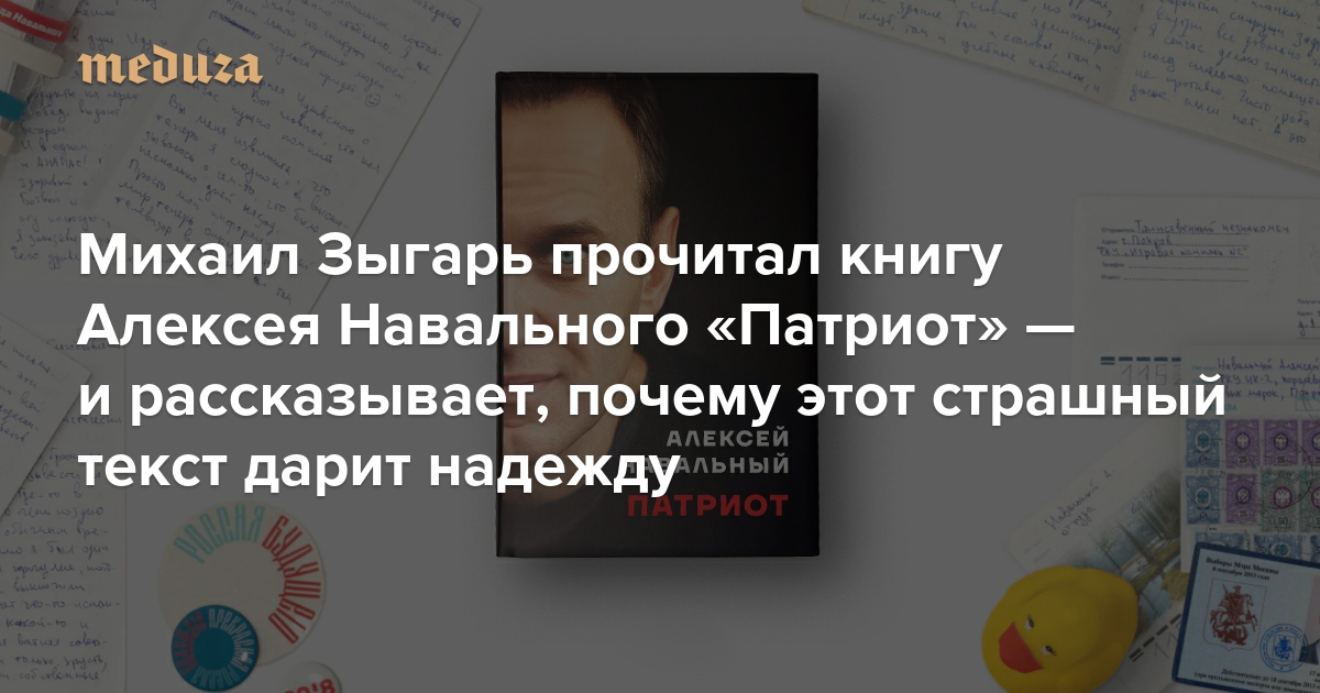 Одновременно по всему миру 22 октября выходят мемуары Алексея Навального — «Патриот». Он начал писать этот текст еще до возвращения в Россию и продолжал работать над ним в тюрьме. На русском языке книгу Навального выпустили близкие и соратники политика. Специально для «Медузы» писатель и журналист Михаил Зыгарь прочитал автобиографию Алексея Навального — и рассказывает, почему этот страшный текст дарит надежду.