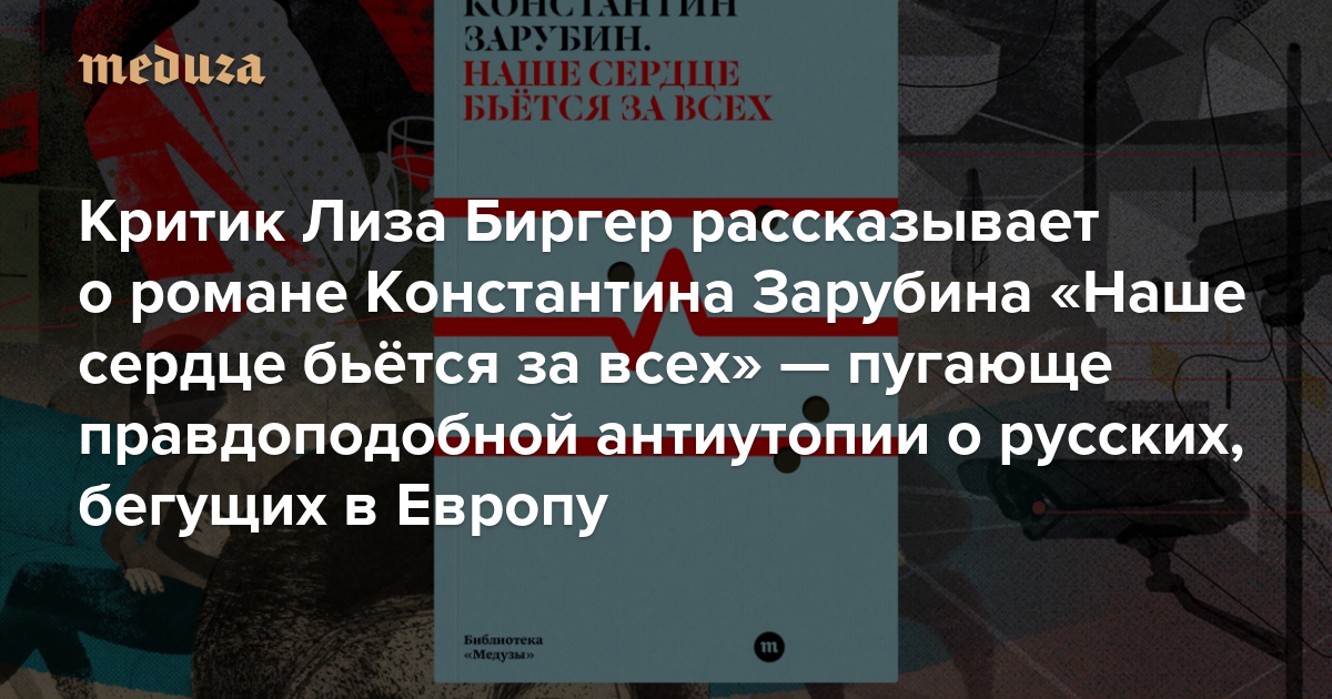 «Ответ русской классике. И ее необходимое развенчание» Критик Лиза Биргер рассказывает о романе Константина Зарубина «Наше сердце бьётся за всех» — пугающе правдоподобной антиутопии о русских, бегущих в Европу