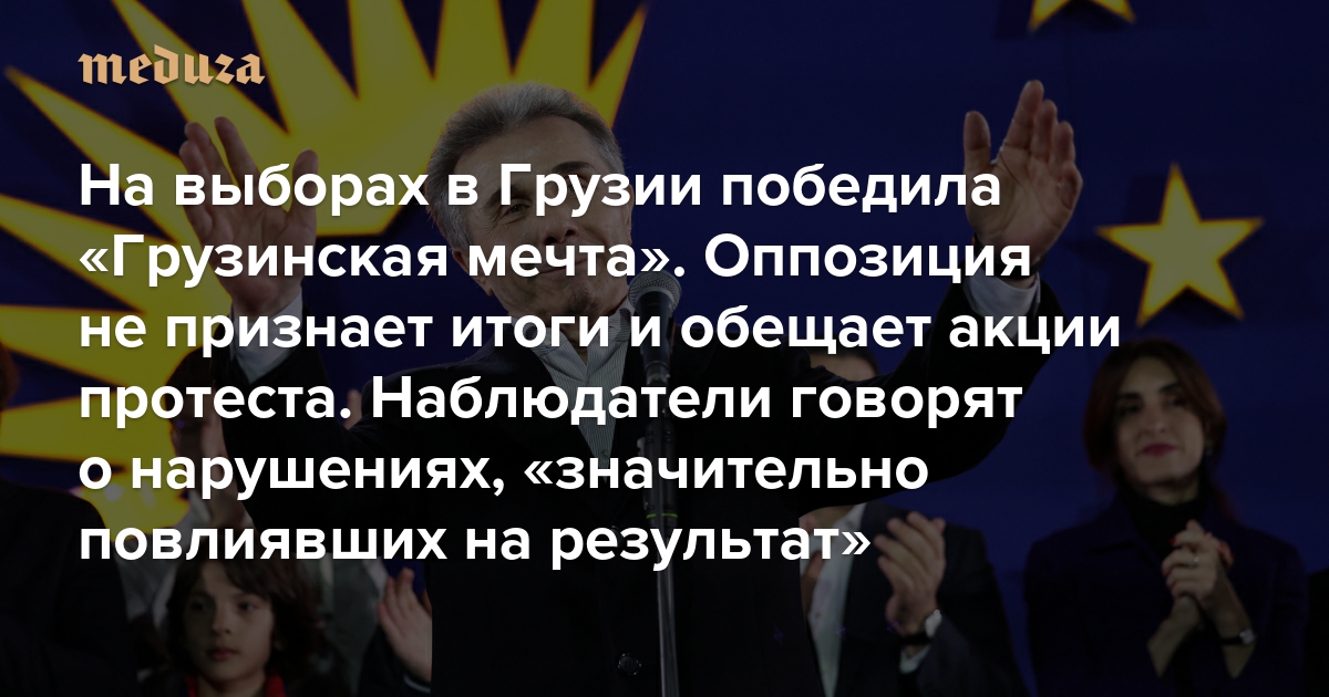 На выборах в Грузии победила пророссийская «Грузинская мечта». Оппозиция отказалась признать итоги и обещает акции протеста Наблюдатели говорят о нарушениях, «значительно повлиявших на результат»