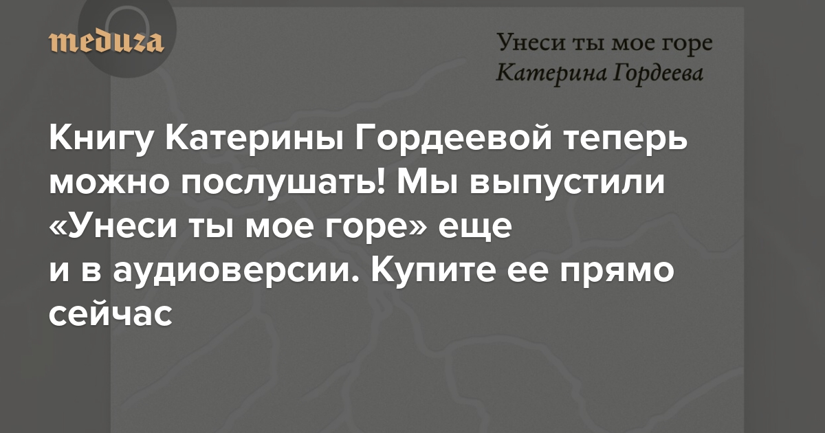 Книгу Катерины Гордеевой теперь можно послушать! Мы выпустили «Унеси ты мое горе» еще и в аудиоверсии. Купите ее прямо сейчас