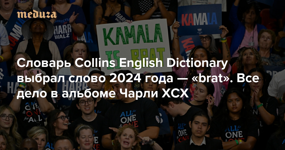 Составители толкового словаря английского языка Collins English Dictionary назвали словом 2024 года «brat» — прилагательное, характеризующее человека с «уверенным, независимым и гедонистическим поведением». Об этом говорится в публикации, появившейся в блоге словаря 1 ноября.