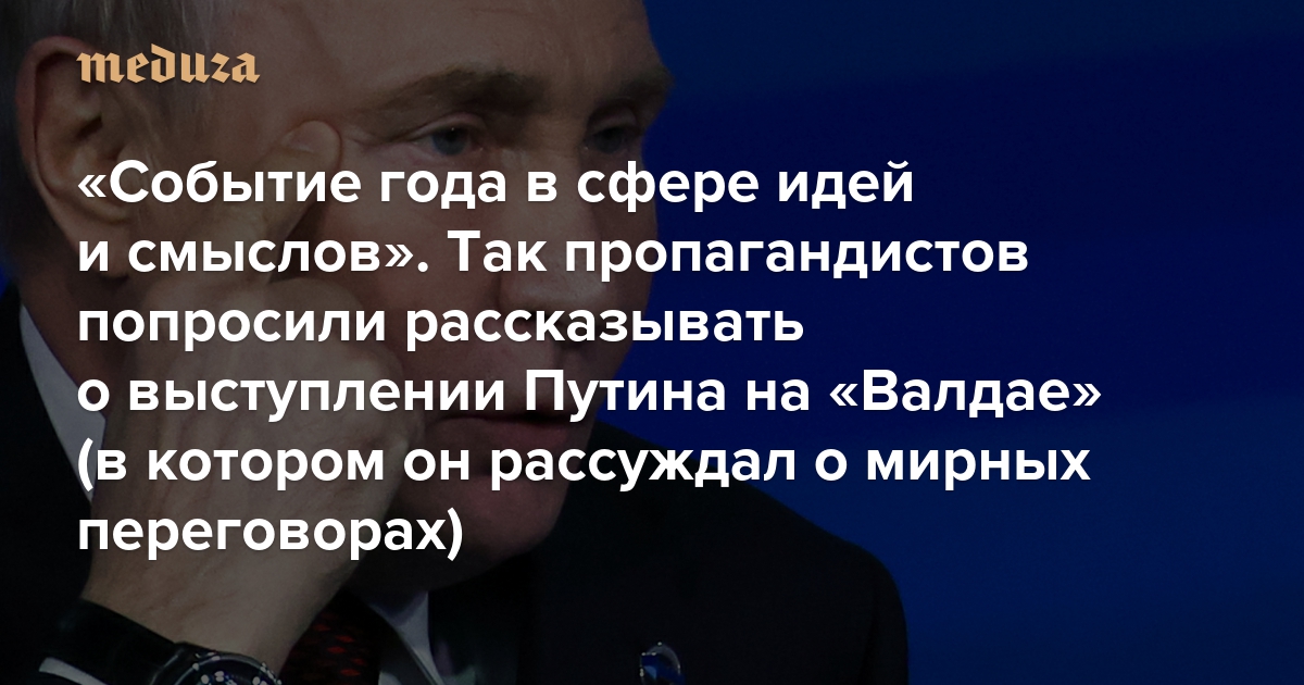 «Событие года в сфере идей и смыслов» Так пропагандистов попросили рассказывать о выступлении Путина на «Валдае» (в котором он фактически обратился к Трампу — и заявил, что Россия готова к мирным переговорам)