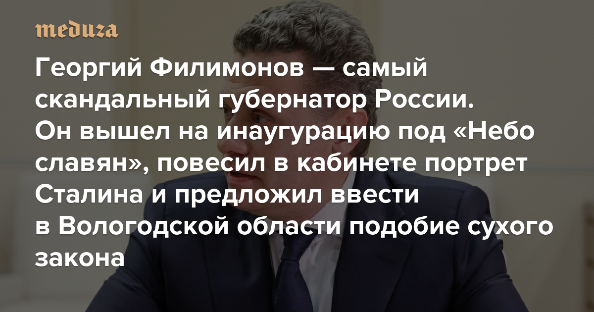 Георгий Филимонов — самый скандальный губернатор России Он вышел на инаугурацию под «Небо славян», повесил в кабинете портрет Сталина и предложил ввести в Вологодской области подобие сухого закона