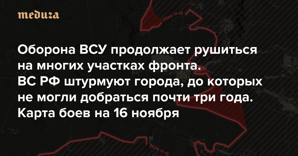 Оборона ВСУ продолжает рушиться на многих участках фронта. ВС РФ штурмуют города, до которых не могли добраться почти три года Карта боев на 16 ноября