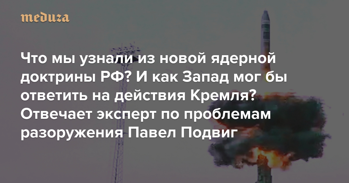 Редактор отдела «Разбор» Петр Сапожников поговорил с руководителем проекта «Ядерное вооружение России» Павлом Подвигом о том, какие важные изменения появились в документе, приблизился ли мир к ядерному конфликту и какой может быть оптимальная стратегия Запада в нынешних условиях.