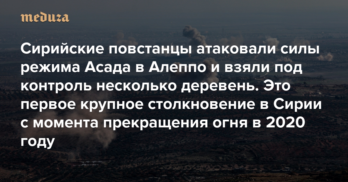 Сирийские повстанцы атаковали силы режима Башара Асада в Алеппо и взяли под контроль несколько деревень Это первое крупное столкновение сторон с момента прекращения огня в 2020 году