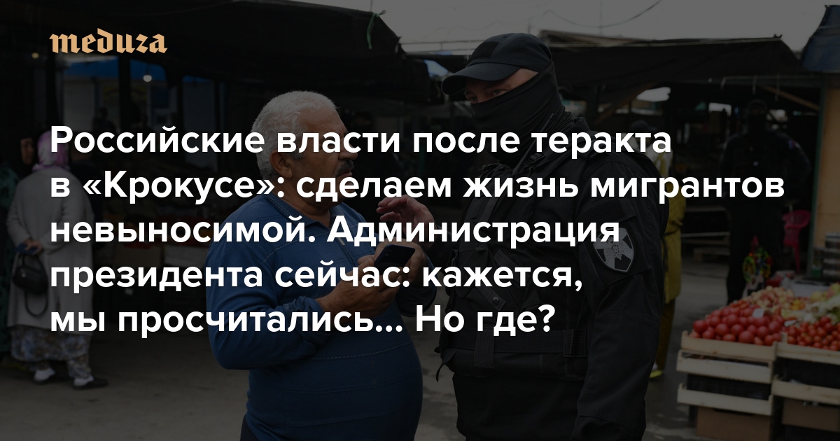 Российские власти после теракта в «Крокусе»: сделаем жизнь мигрантов невыносимой. Администрация президента сейчас: кажется, мы просчитались… Но где?