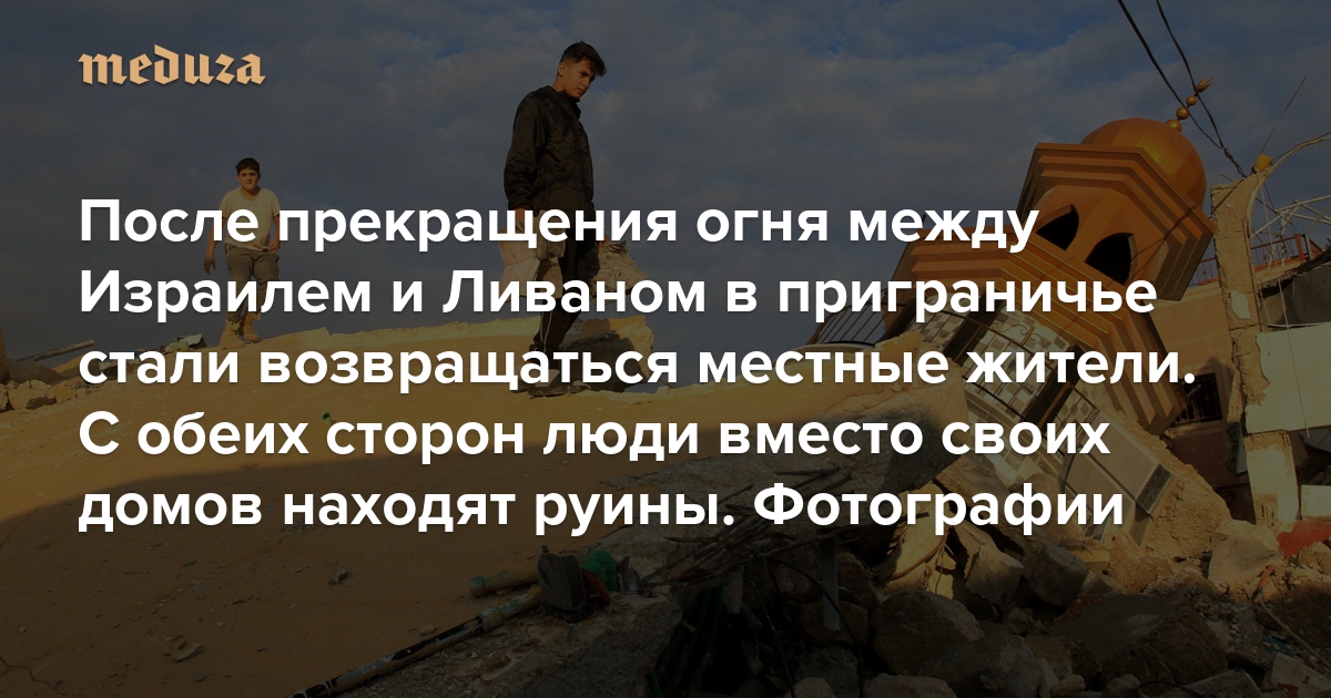 Вечером 26 ноября стало известно о заключении соглашения о прекращении огня между Израилем и Ливаном. Согласно решению, включающему 13 пунктов, Израиль в течение 60 дней выведет свои войска с юга соседней страны, силы «Хизбаллы» должны отойти на север за реку Литани, а южное приграничье займут ливанские силы безопасности и регулярная армия. Ливанцы, проживавшие на юге страны, после объявления о перемирии начали возвращаться в свои дома, многие из которых оказались превращены в руины. По подсчетам The New York Times, сделанным на основе анализа спутниковых снимков Planet Labs, к началу ноября Армия обороны Израиля уничтожила на территории Ливана более тысячи строений — в основном на юге страны и вокруг Бейрута. Некоторые деревни, такие как Мейс аль-Джабаль и Мхабиб, фактически сровняли с землей. Израильские официальные лица заявили, что их целью является военная инфраструктура «Хизбаллы», глубоко укоренившаяся в этих деревнях и включающая склады оружия, плацдармы и туннели. Массовые разрушения в результате обстрелов «Хизбаллы» есть и на израильской стороне, однако пока местные жители в большинстве своем не хотят возвращаться из-за опасения нарушения перемирия и возобновления боевых действий. Вот как последствия конфликта последних месяцев выглядят с обеих сторон границы.