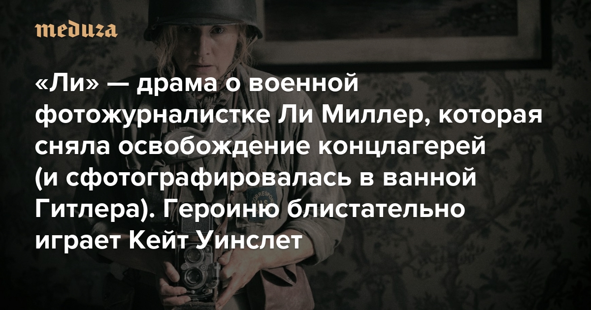 «Ли» — драма о военной фотожурналистке Ли Миллер, которая сняла освобождение концлагерей (и сфотографировалась в ванной Гитлера) Героиню блистательно играет Кейт Уинслет. Но самому фильму явно не хватает глубины