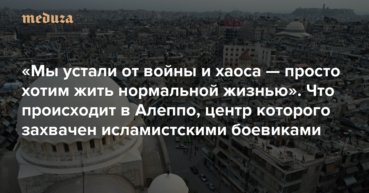 «Мы устали от войны и хаоса — просто хотим жить нормальной жизнью» Что происходит в Алеппо, центр которого захвачен исламистскими боевиками