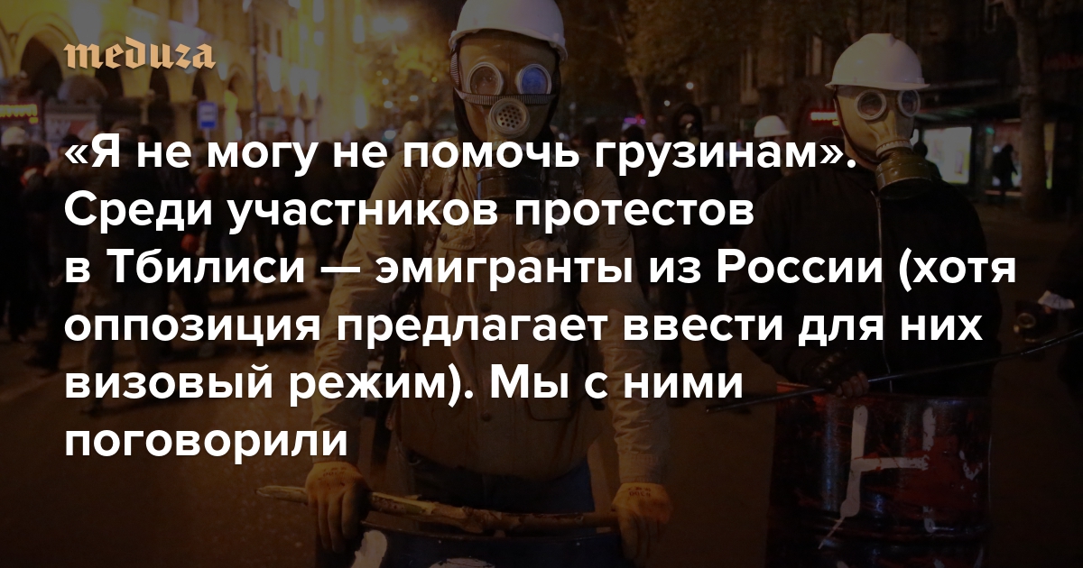«Я не могу не помочь грузинам» Среди участников протестов в Тбилиси — эмигранты из России (хотя оппозиция предлагает ввести для них визовый режим). Мы с ними поговорили