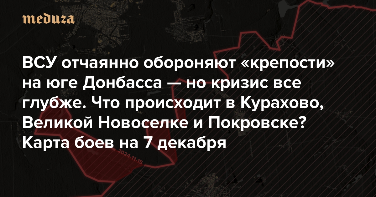 Российская армия пытается окружить поселок, который был форпостом обороны ВСУ в Донбассе с самого начала войны. Его захват откроет путь к наступлению в направлении Днепра Карта боев на 7 декабря