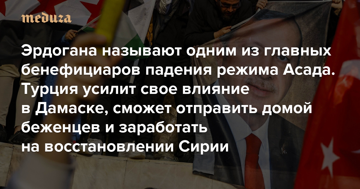 Эрдогана называют одним из главных бенефициаров падения режима Асада Турция усилит свое влияние в Дамаске, сможет отправить домой беженцев и заработать на восстановлении Сирии