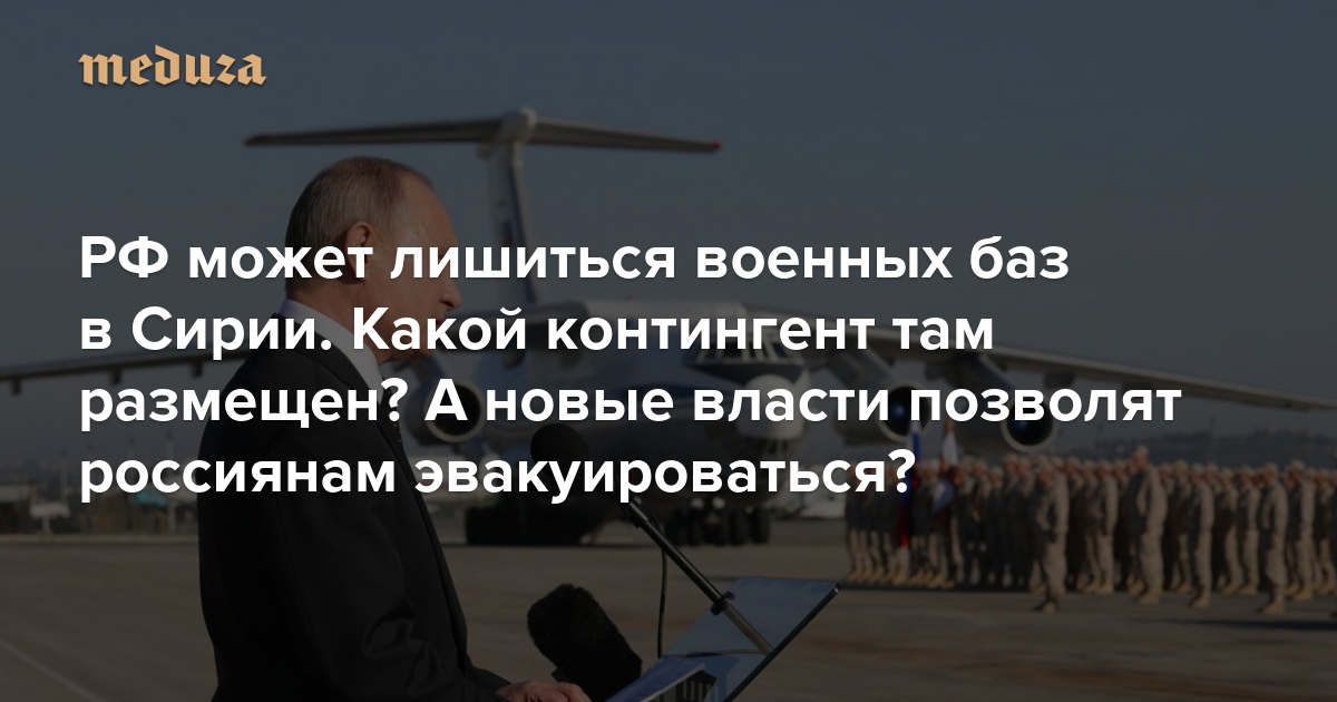 РФ может лишиться военных баз в Сирии. Какой контингент там размещен? А новые власти позволят россиянам эвакуироваться? Туманные перспективы военного присутствия РФ после свержения Асада